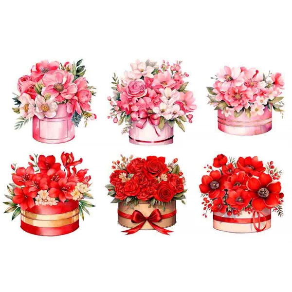 Estampa Fácil Caixas com Flores Rosa e Vermelho