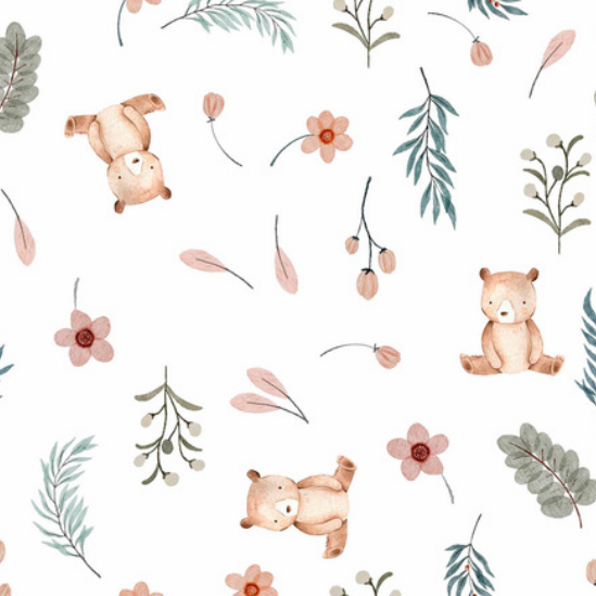 Flanela Est. Digital Ursos e folhas 02, 100%Alg. 50cm X 78cm