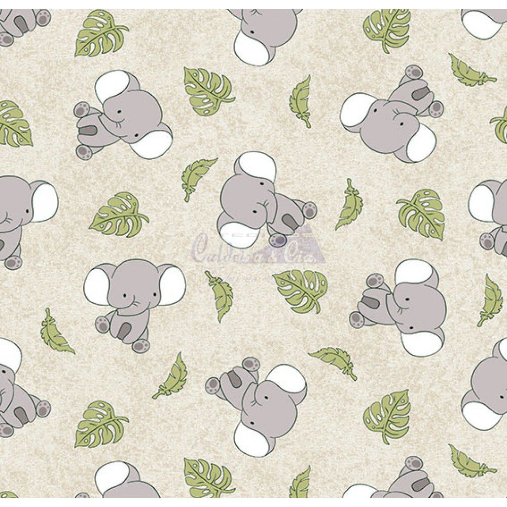 Tricoline Elefantes (Bege), 100% Algodão, Unid. 50cm x 1,50mt
