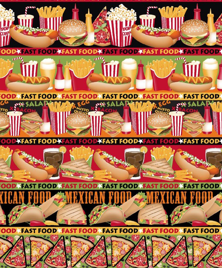 Tecido Tricoline Barrado Fast Food, 100% Alg. 50cm x 1,50mt