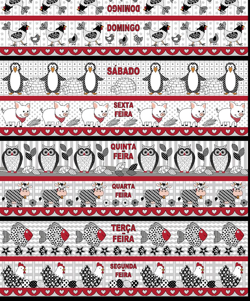 Tricoline Barrado Semaninha Animais Fofos, 62cm x 1,50mt