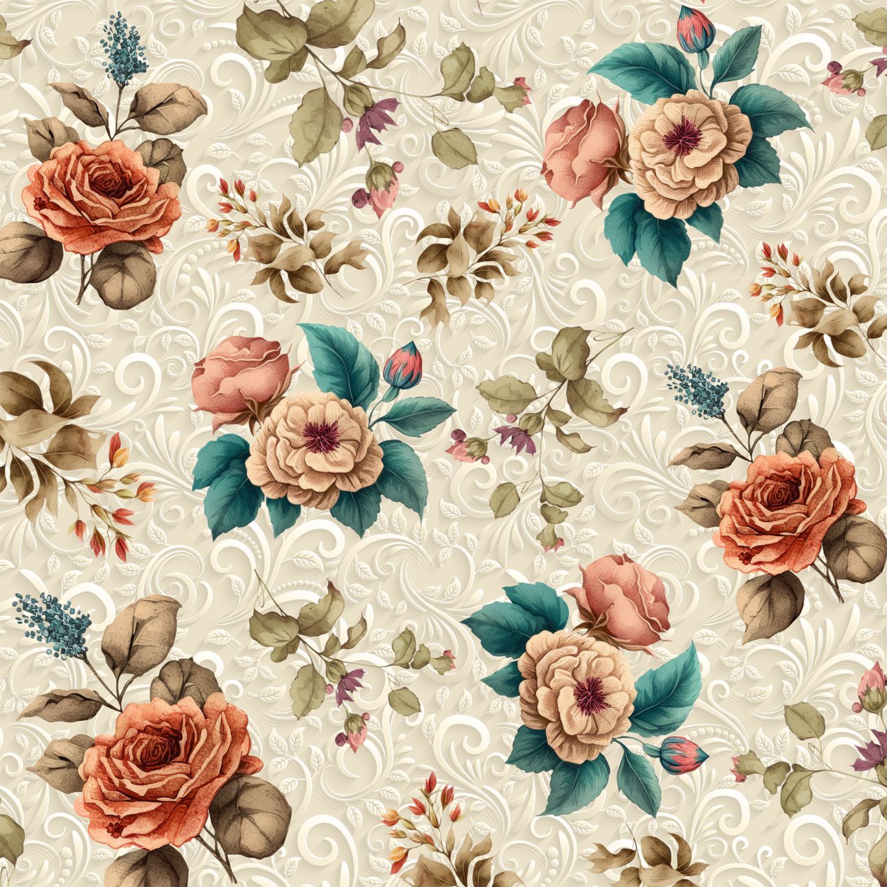 Tricoline Digital Encanto Floral, 100% Algodão 50cm x 1,50mt