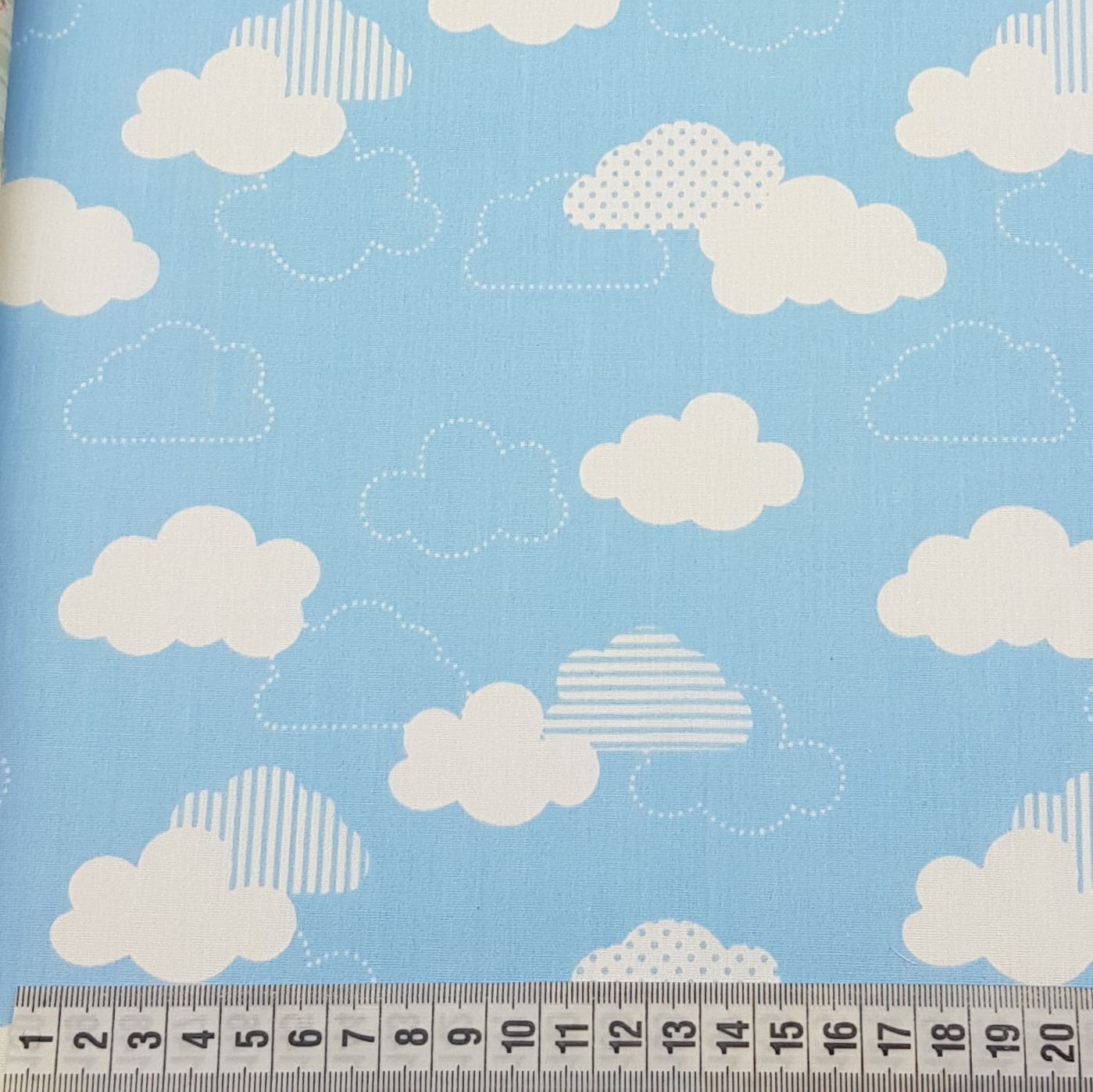 Tricoline Nuvens Fundo Azul 100% Algodão 50cm x 1,50mt.