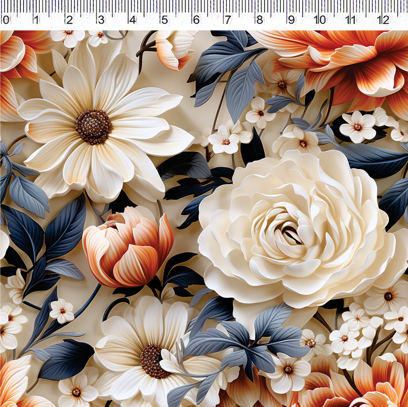Tecido Tricoline Digital Rosas com Flores, 50cm x 1,50mt