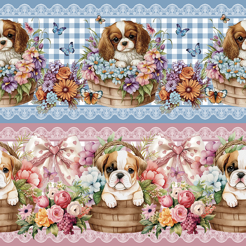 Tricoline Barrado Cachorrinhos Encantados, At. 5mt x 1,50mt