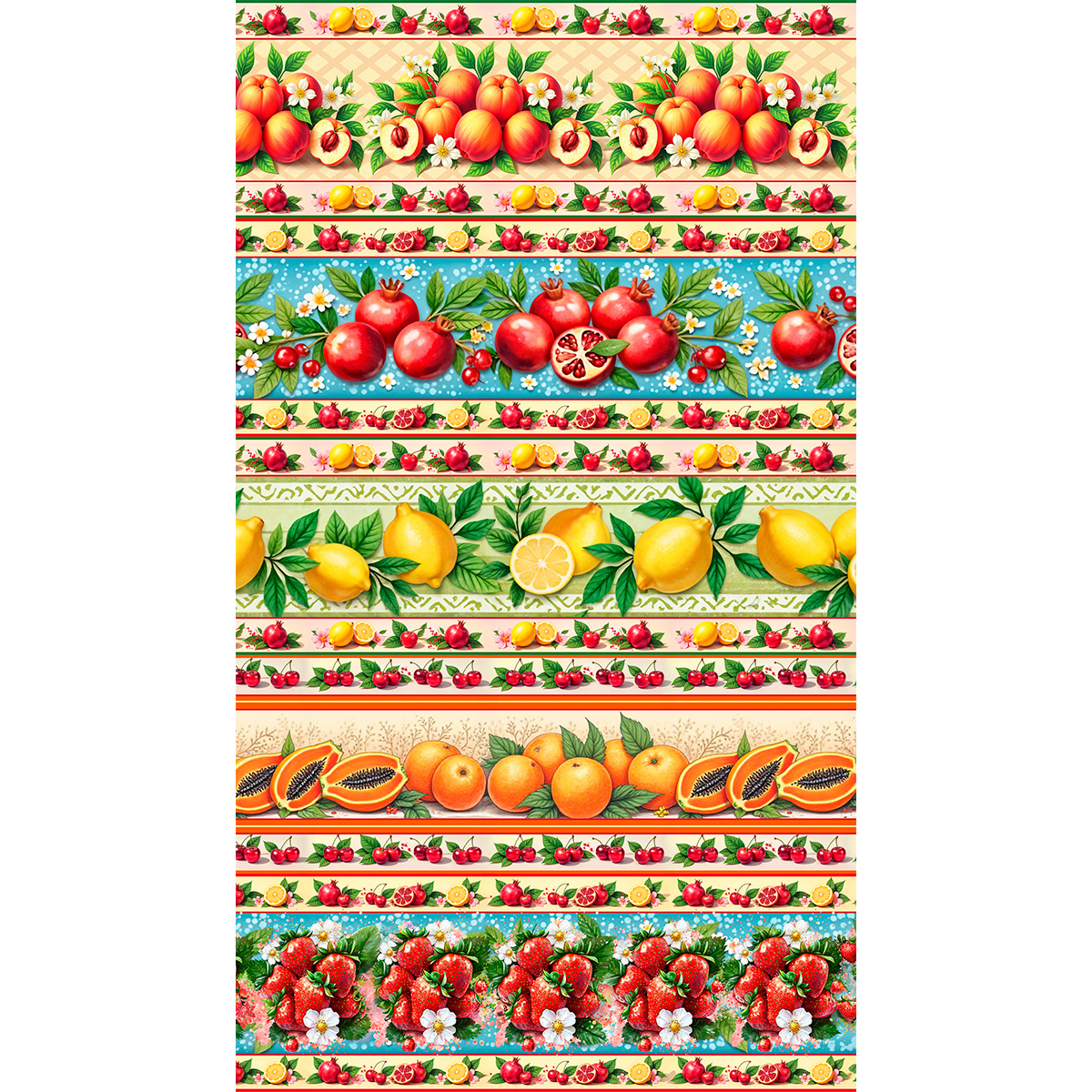 Tricoline Barrado Frutas dos Sonhos, 100%Alg, 50cm x 1,50mt