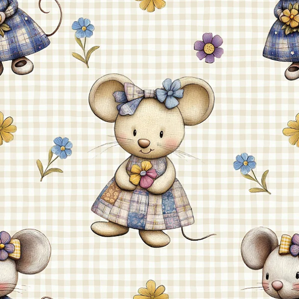 Tricoline Dig Bichinhos Blue Lavender Ratinhas 50cm x 1,50mt