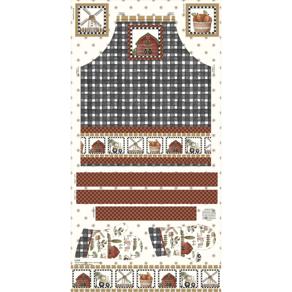 Tricoline Estampado Digital 100% Algodão, Avental e Luvas Vida no Campo 75cm x 1,50m.