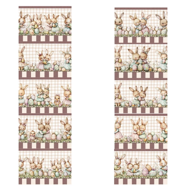 Tricoline Digital Barrado Dupla Coelho Páscoa, 50cm x 1,50mt