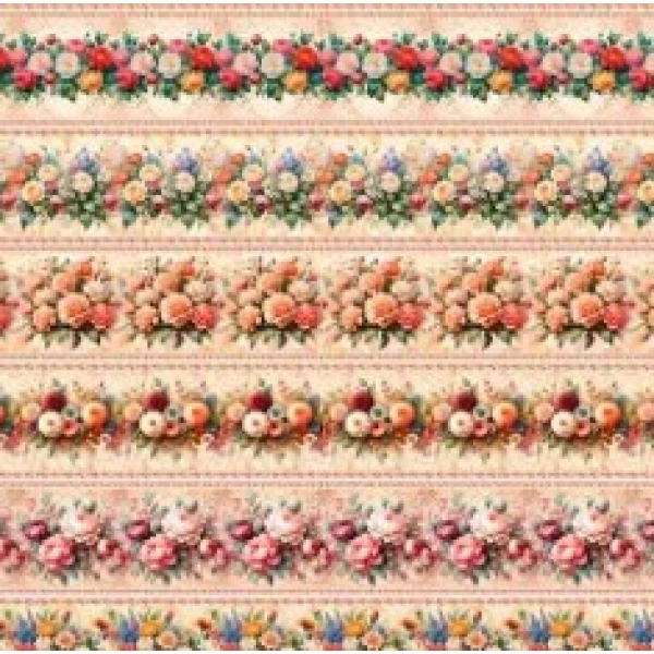 Tricoline Digital Barrado Floral, 100%Algodão, 50cm x 1,50mt