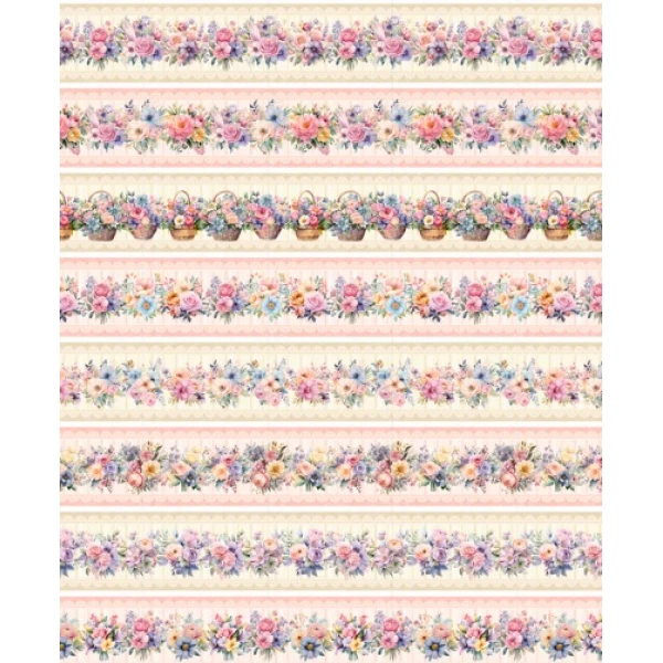 Tricoline Digital Barrado Floral Pastel 100%Alg 50cm x 1,50m