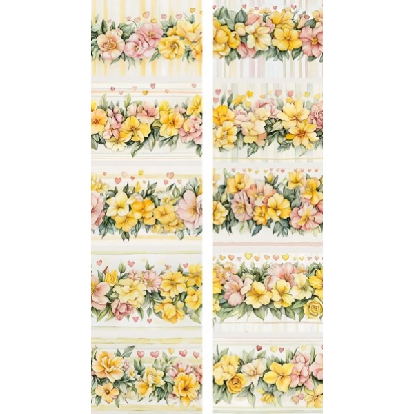 Tricoline Digital Barrado Flores Amarelas, 50cm x 1,50mt