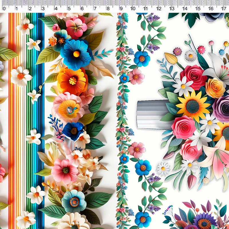 Tricoline Digital Barrado Flores de Papel, 50cm x 1,50mt