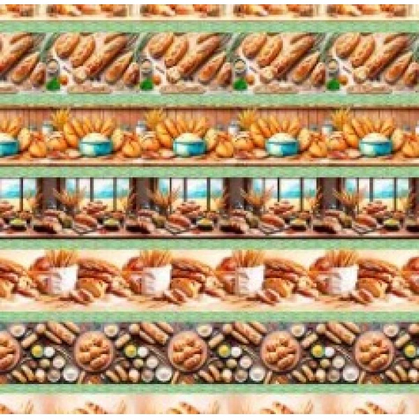 Tricoline Digital Barrado Pães, 100% Algodão, 50cm x 1,50mt