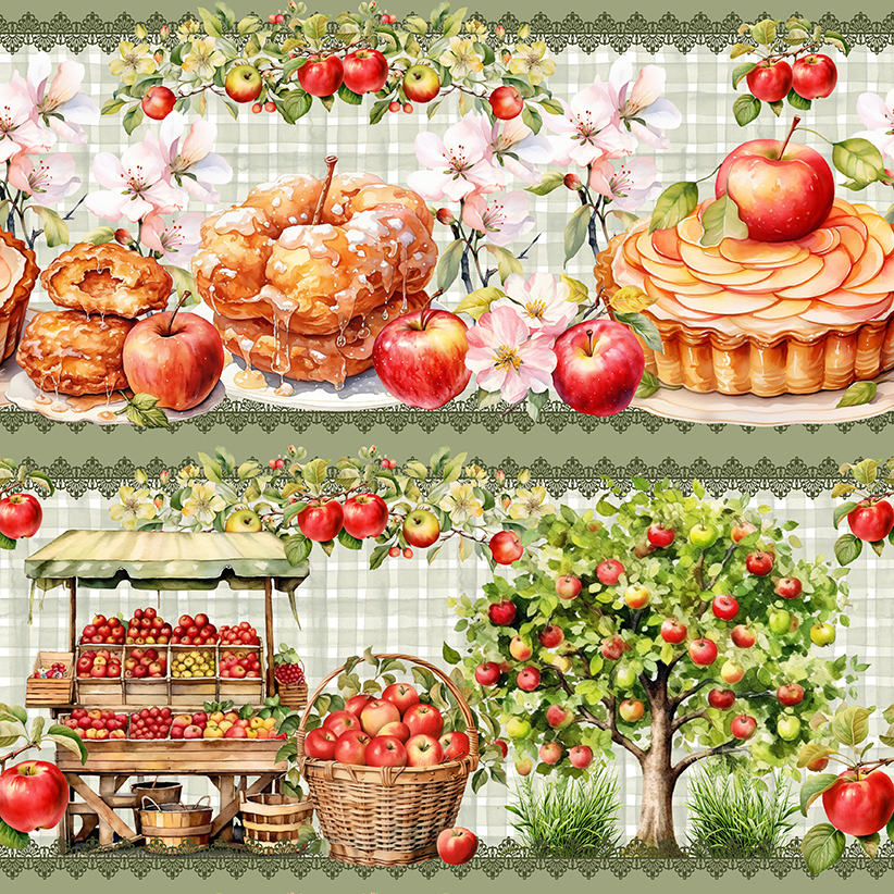 Tricoline Digital Barrado Pomar de Maça, 55cm x 1,50mt