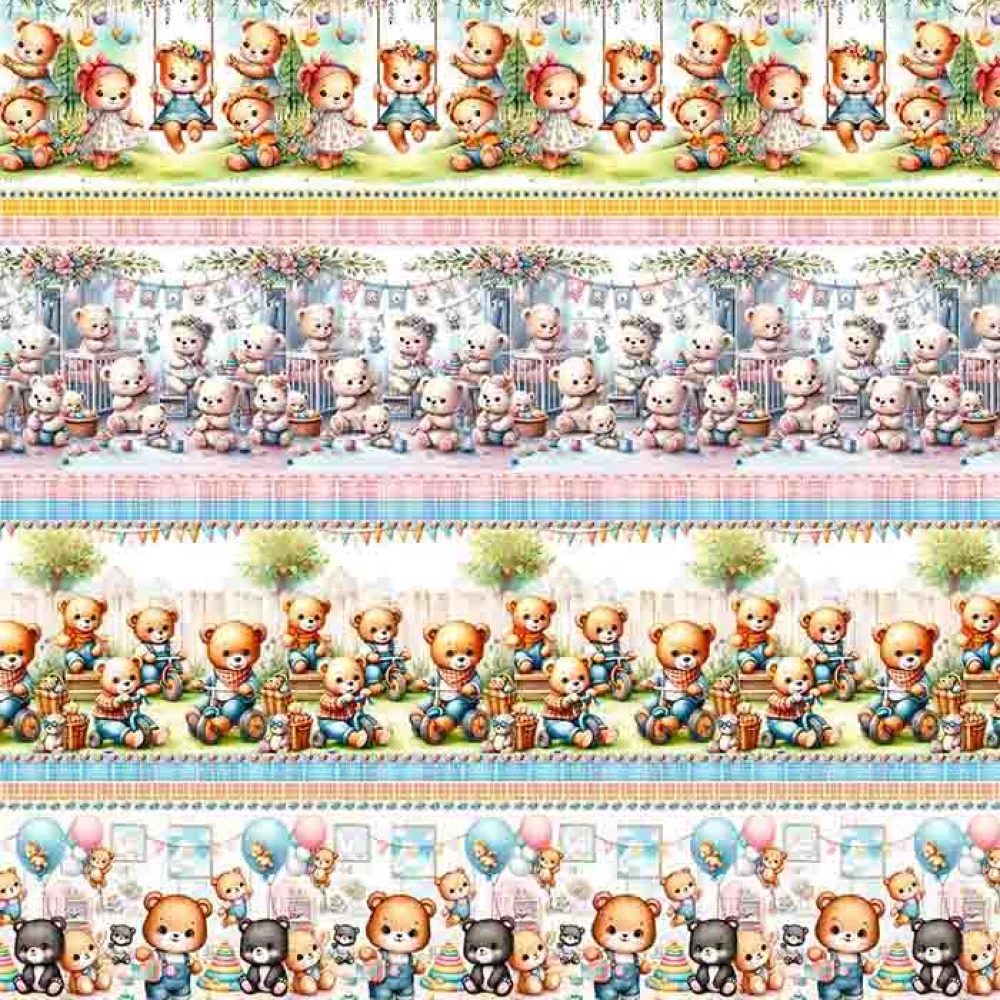 Tricoline Digital Barrado Ursinhos, 100% Algodão 50cmx1,50mt