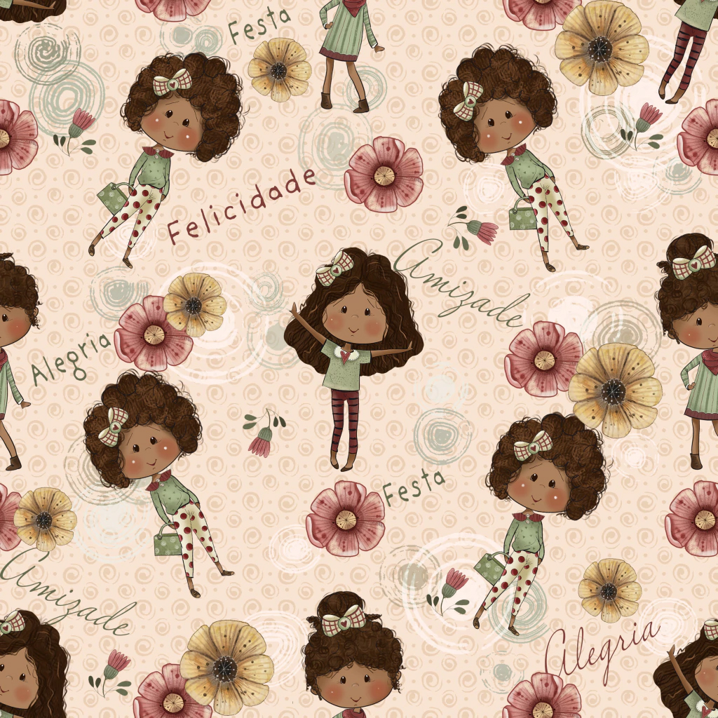 Tricoline Digital Bonecas Alegria, 100%Algodão 50cm x 1,50mt