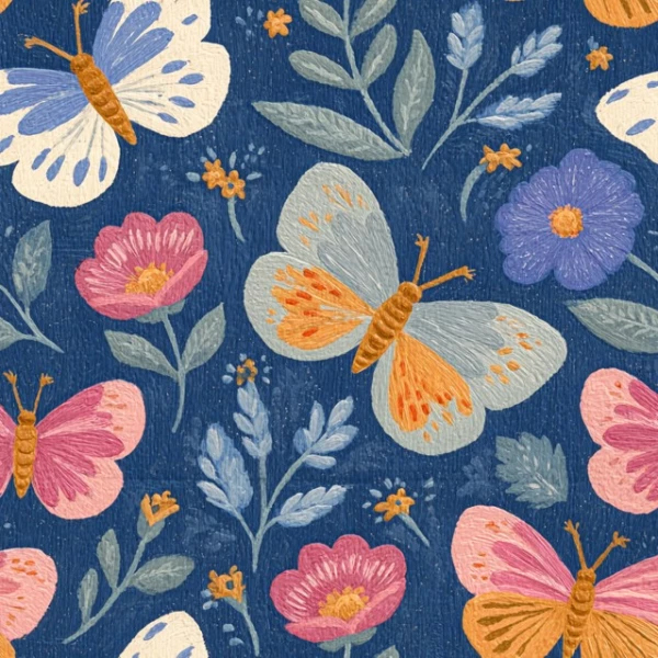 Tricoline Digital Borboletas Azul VA, 100%Alg, 50cm x 1,50mt