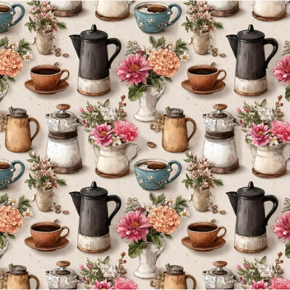 Tricoline Digital Bules e Xícaras 100% Algodão 50cm x 1,50mt