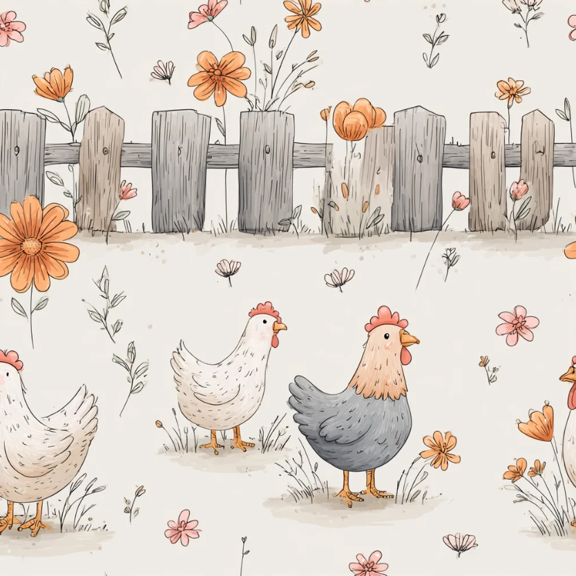 Tricoline Digital Cocoricó Galinhas e Cerca, 50cm x 1,50mt
