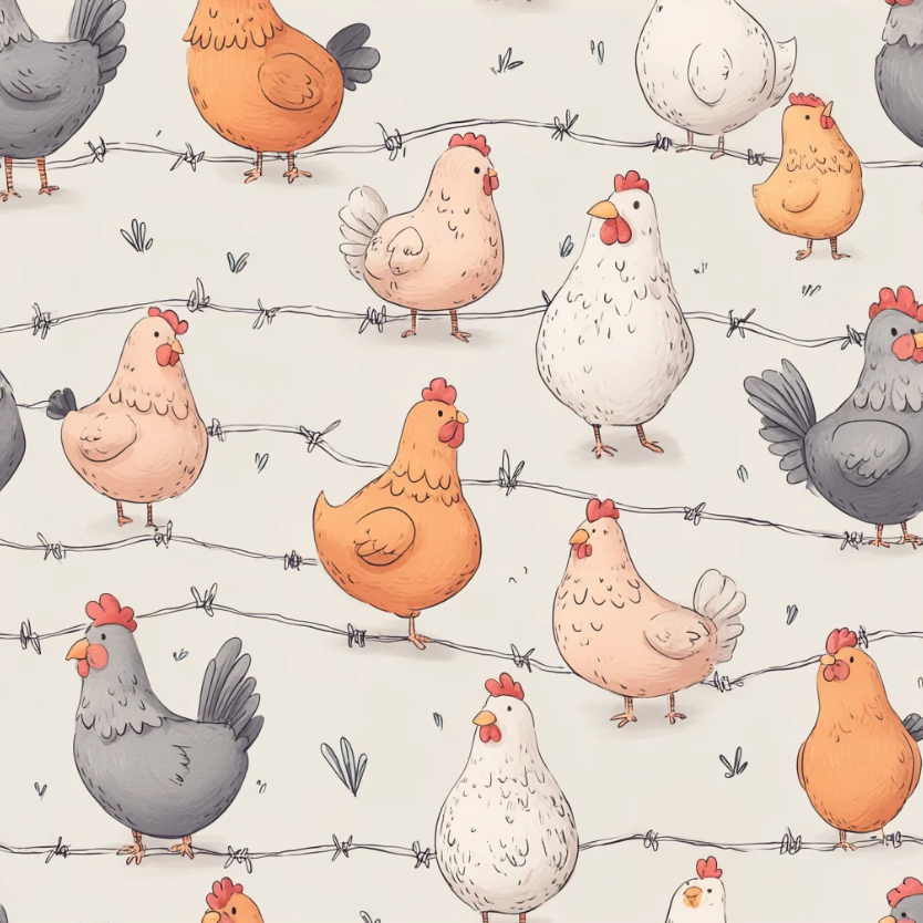 Tricoline Digital Cocoricó Galinhas no Arame, 50cm x 1,50mt