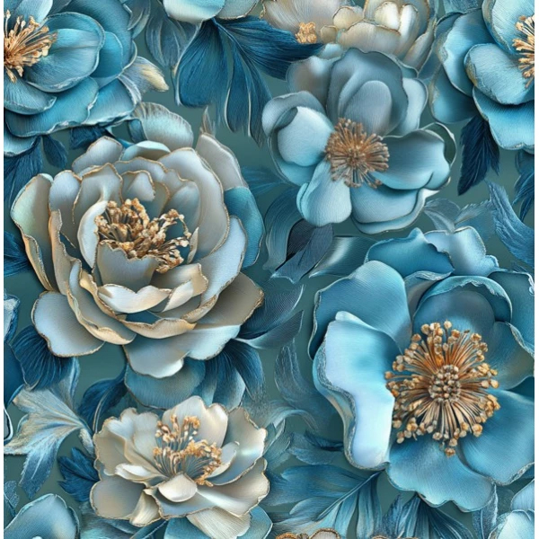 Tricoline Digital Exuber Azul, 100% Algodão, 50cm x 1,50mt