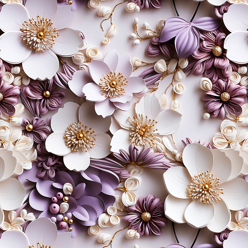 Tricoline Digital Floral 3D Ametista, 100%Alg. 50cm x 1,50mt