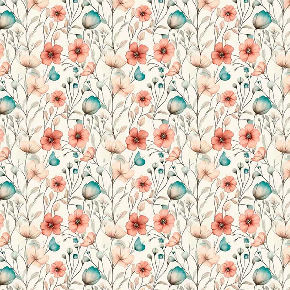 Tricoline Digital Floral Miudo, 100% Algodão, 50cm x 1,50mt
