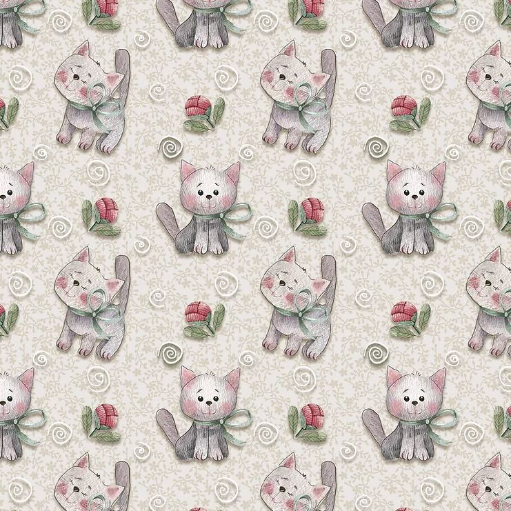 Tricoline Digital Gatinhos Amizade Verdadeira, 50cm x 1,50mt