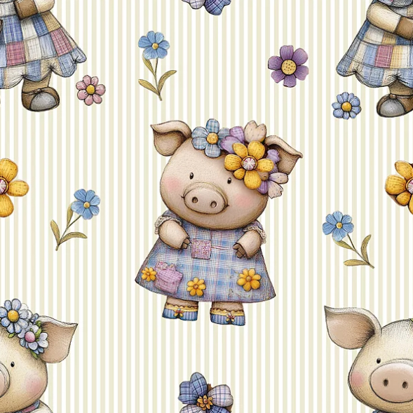 Tricoline Digital Lavender Porquinhas 100%Alg, 50cm x 1,50mt