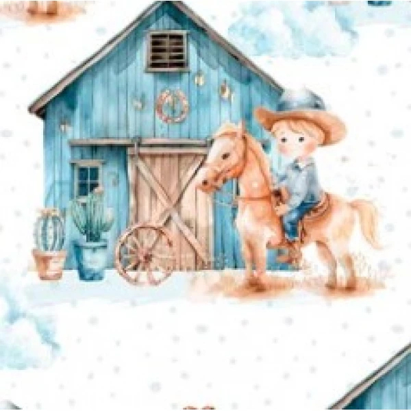 Tricoline Digital Menino e Celeiro 100%Algodão 50cm x 1,50mt