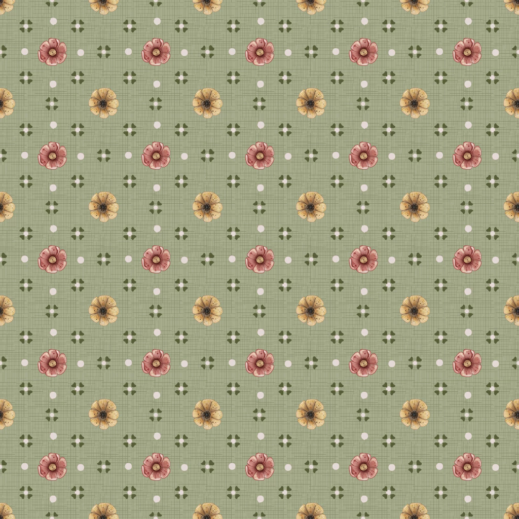 Tricoline Digital Micro Flores Alegria Eucalipto, 50cmx1,50m