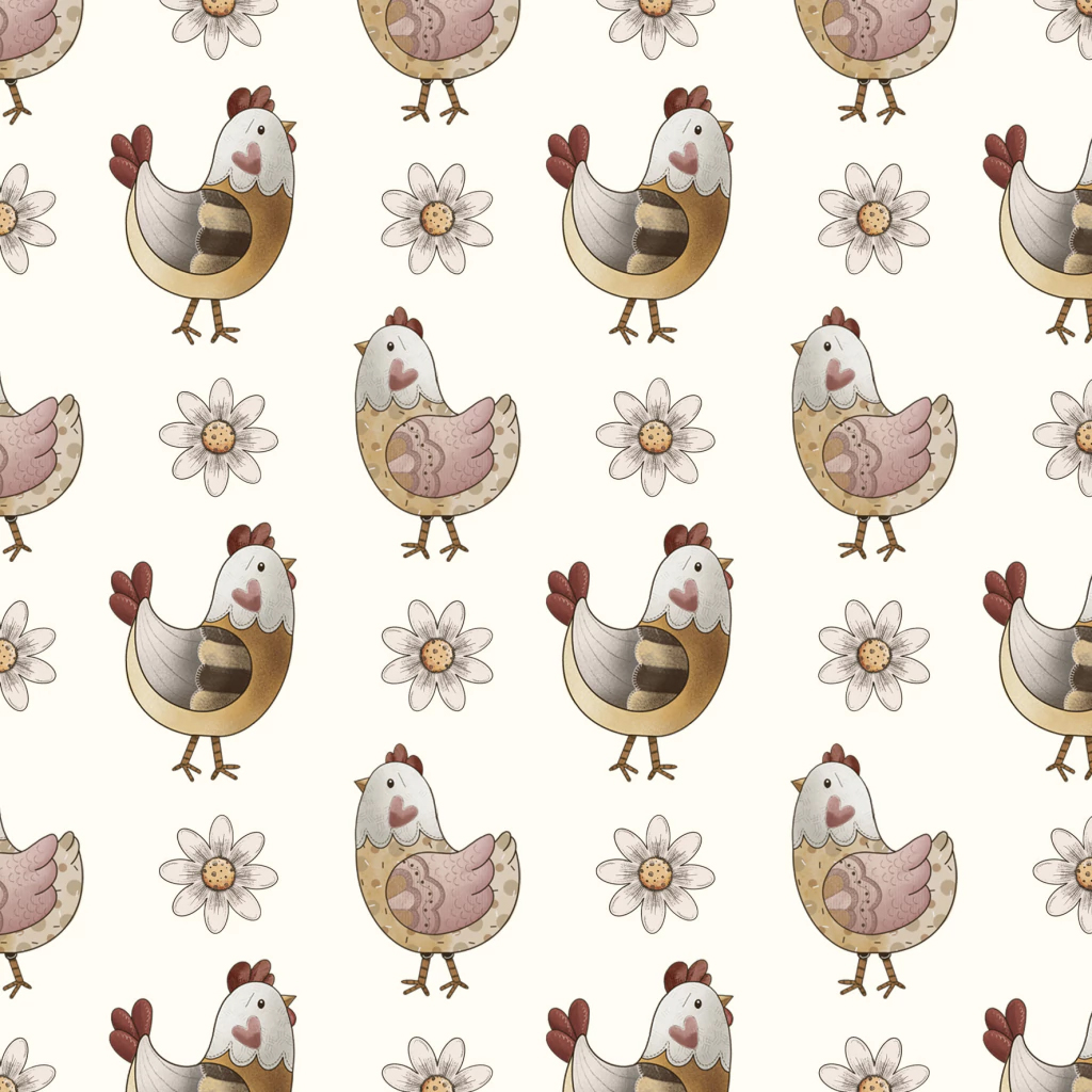 Tricoline Digital Mini Galinhas, 100% Algodão, 50cm x 1,50mt