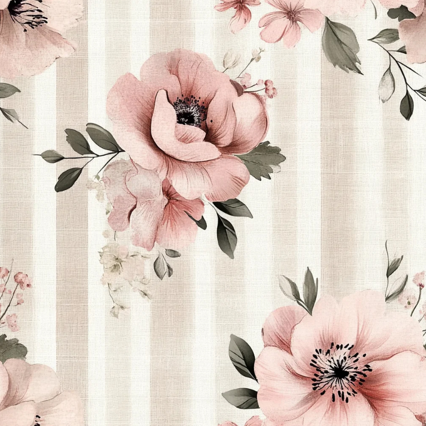 Tricoline Digital Papoulas em Listras 100%Alg, 50cm x 1,50mt