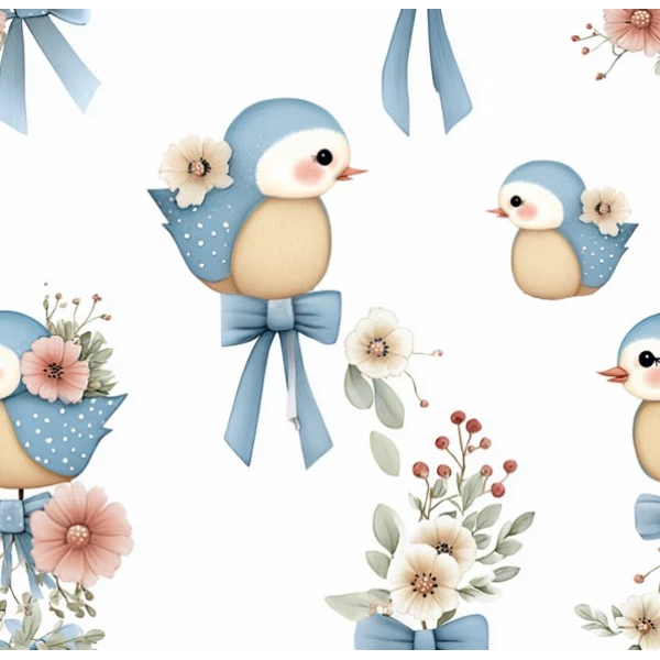 Tricoline Digital Passarinhos com Laços 100%Alg 50cm x 1,50m