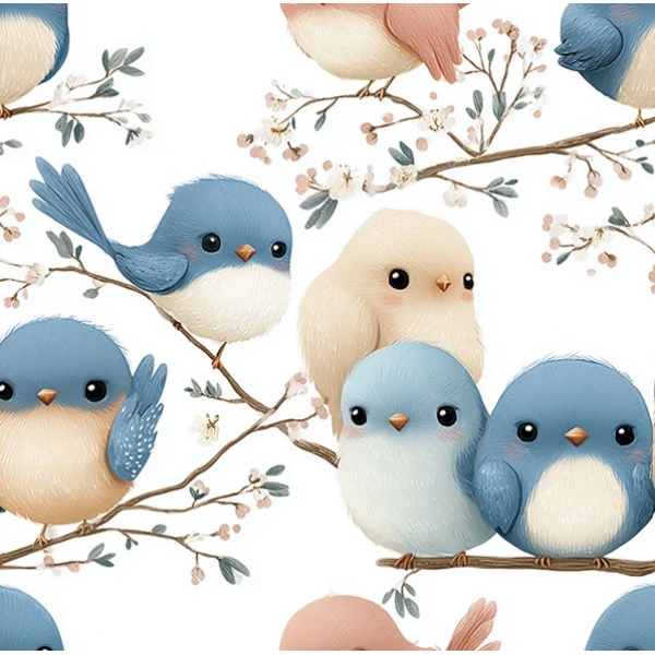 Tricoline Digital Passarinhos no Galho 100%Alg 50cm x 1,50mt
