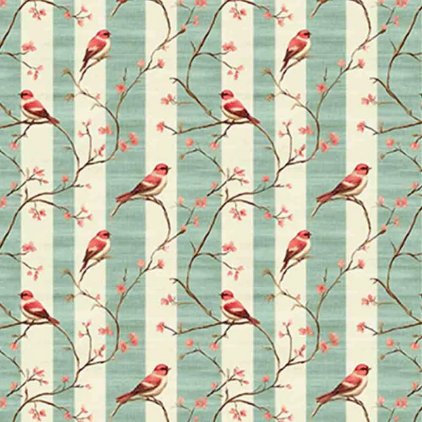 Tricoline Digital Pássaro Listrado Verde, 50cm x 1,50mt