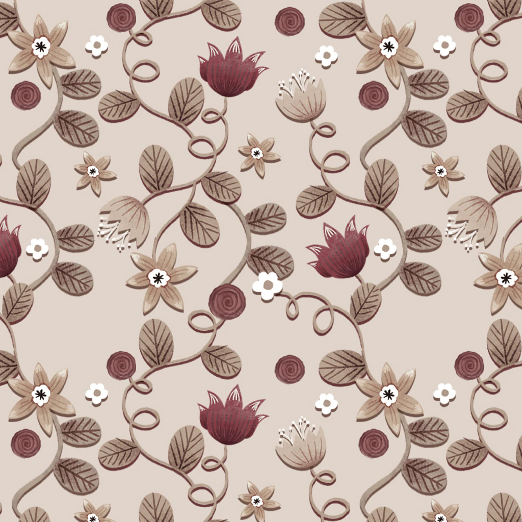 Tricoline Digital Ramos Merlot Fundo Bege, 50cm x 1,50mt