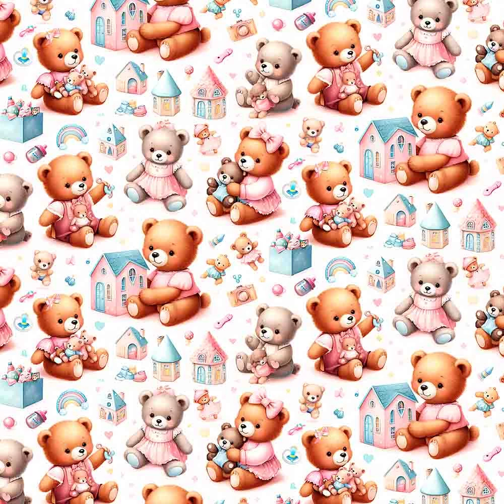 Tricoline Digital Ursinhas com Casinhas, 100%Alg 50cmx1,50mt
