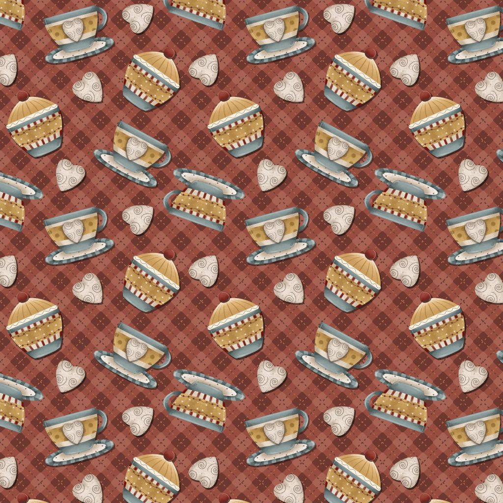 Tricoline Digital Xícaras Amor e Café Vinho, 50cm x 1,50mt