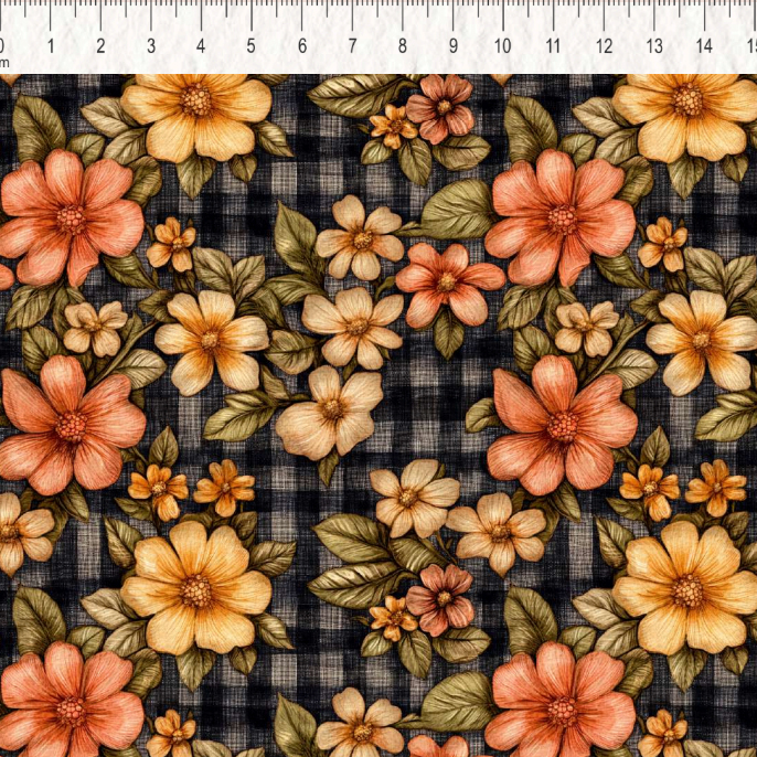 Tricoline Flove Flor Xadrez, 100% Algodão, 50cm x 1,50mt