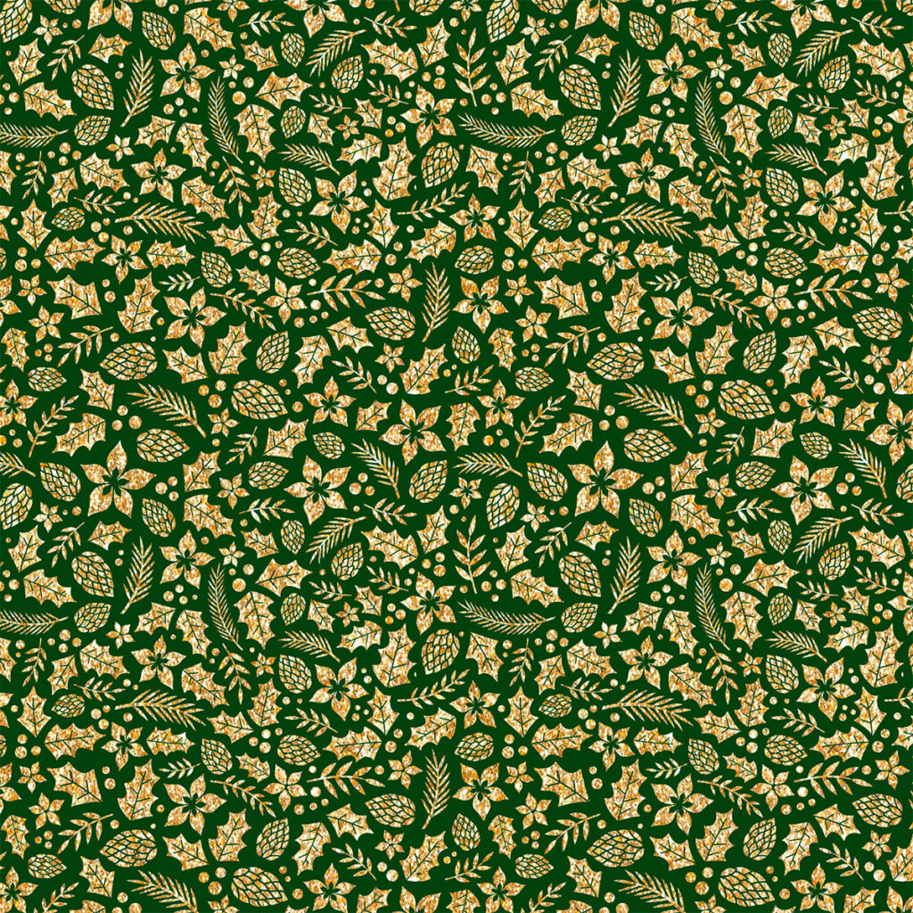 Tricoline Natal Folhagens Douradas F. Verde, 50cm x 1,50mt