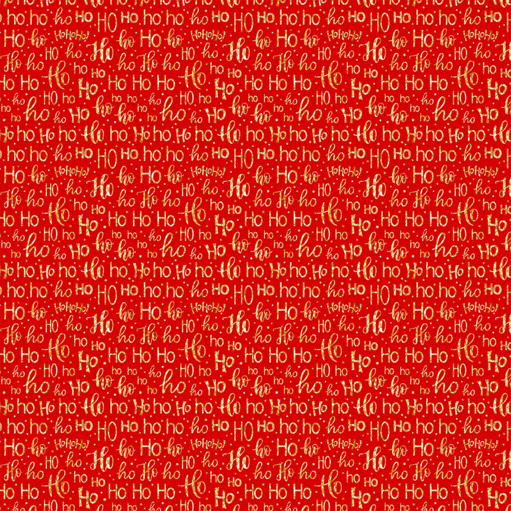 Tricoline Natal Ho Ho Dourado Fundo Vermelho, 50cm x 1,50mt