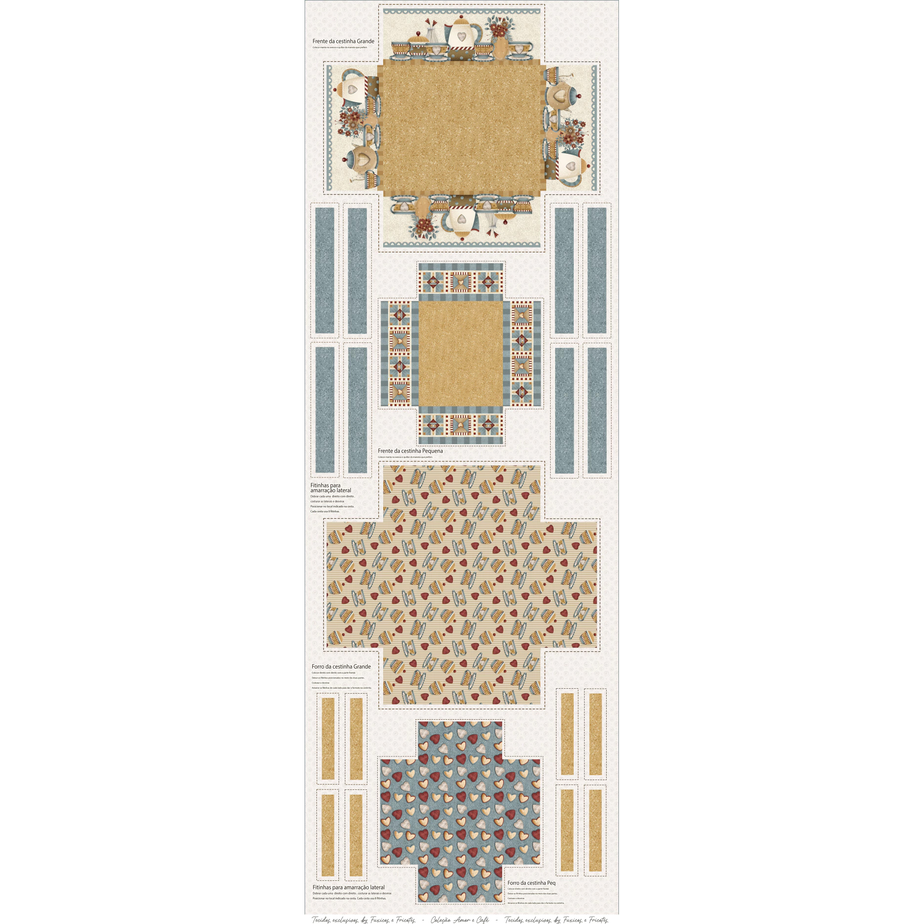 Tricoline Painel Cestinhas de Pães Amor e Café 50cm x 1,50mt