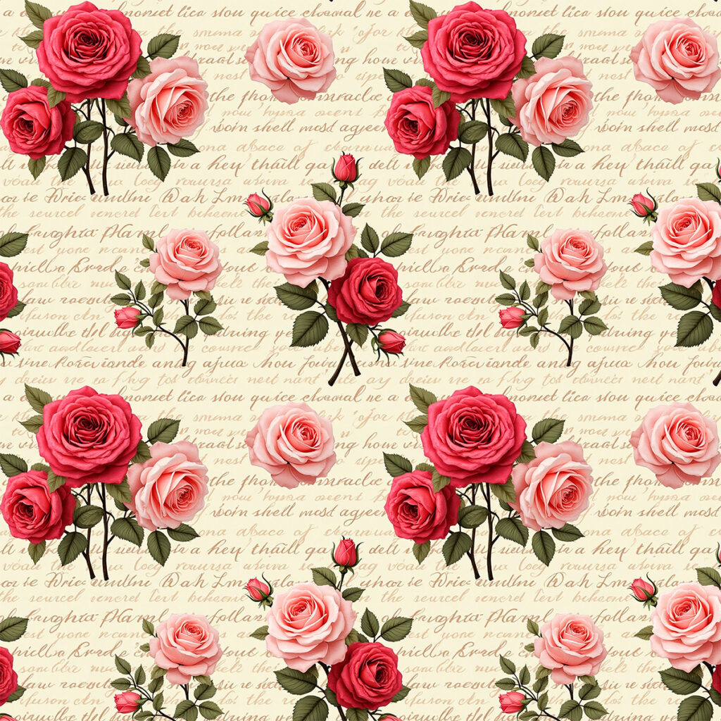 Tricoline Rosas com Escritas, 100% Algodão, 50cm x 1,50mt