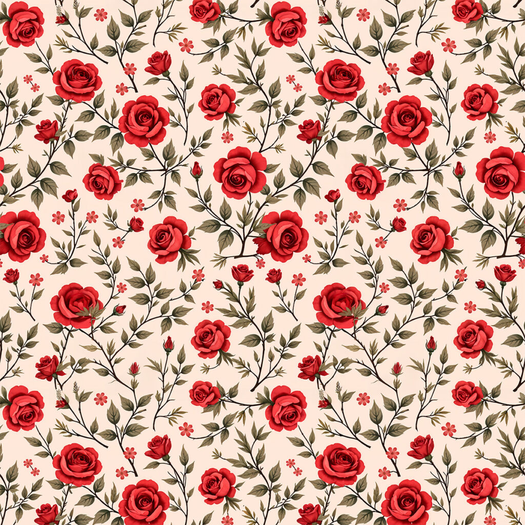 Tricoline Rosas Vermelhas Handmade, 100% Alg., 50cm x 1,50mt